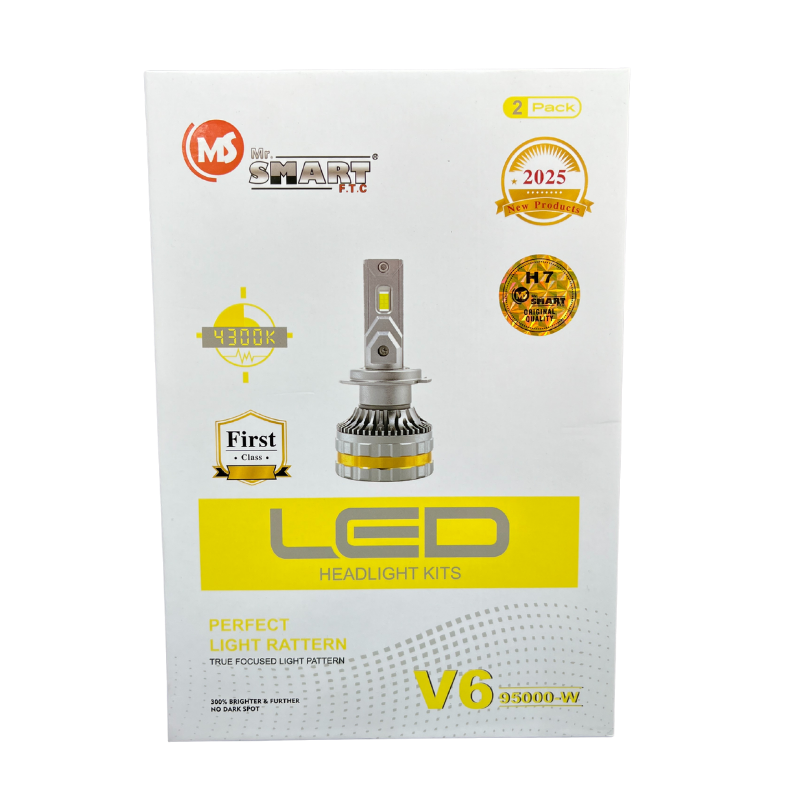 هدلایت MR.SMART مدل V6 پایه H7 یک انتخاب حرفه‌ای برای کسانی است که به دنبال ترکیب نور قوی، دوام بالا و طراحی زیبا هستند.